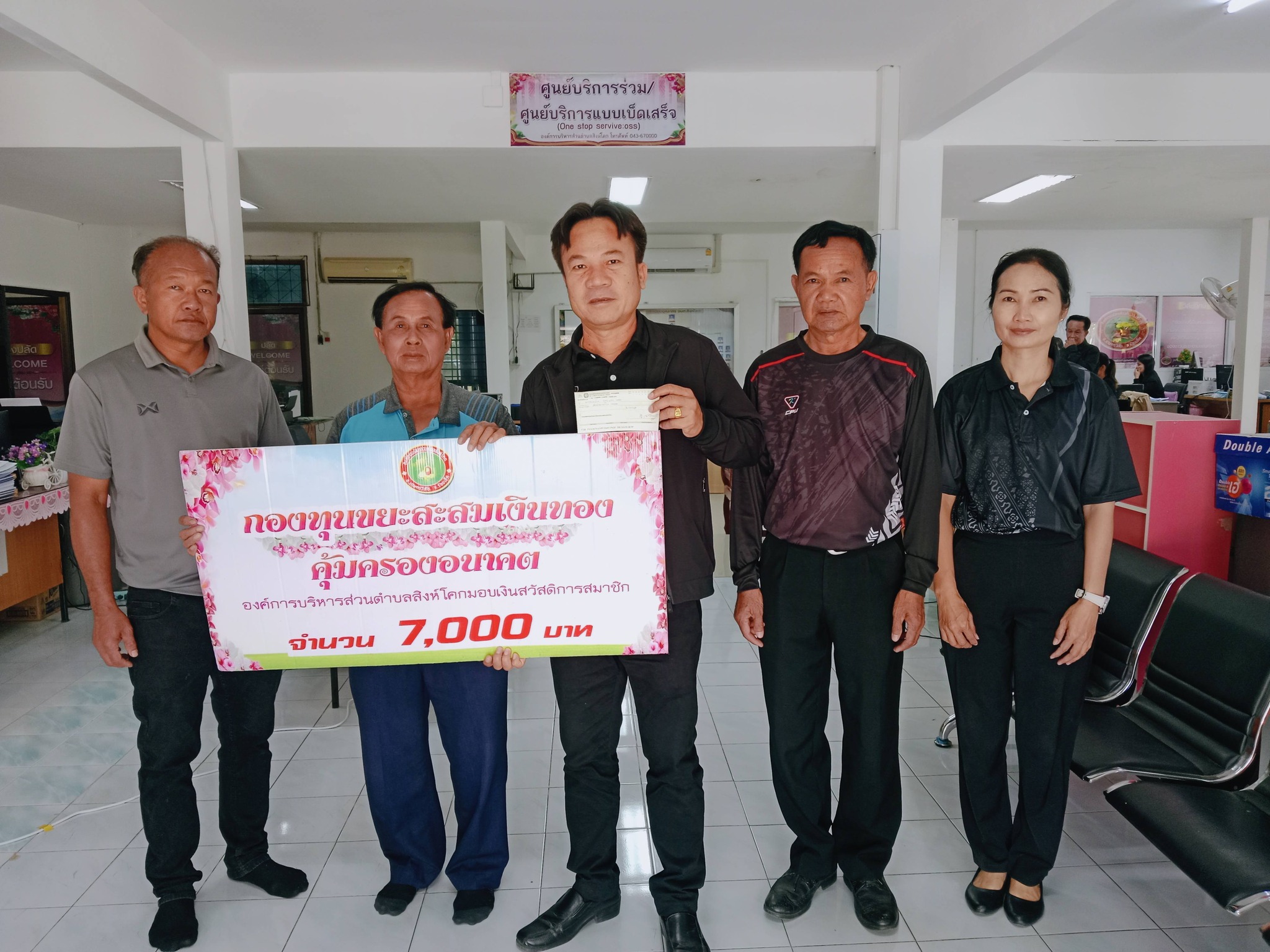 มอบเงินสงเคราะห์ศพ กองทุนขยะ สะสมเงินทอง คุ้มครองอนาคต ตำบลสิงห์โคก จำนวน 7,000 บาท ราย นายธนัช จันทะชา บ้านขี้เหล็กซ้าย หมู่ที่ 7