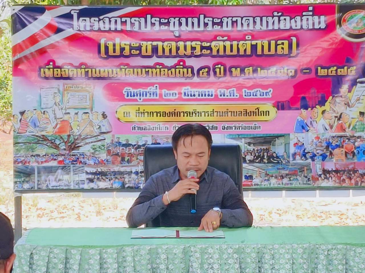 ร้อยตำรวจตรี วิเชียร นามวงษ์ศรี นายกองค์การบริหารส่วนตำบลสิงห์โคก เป็นประธานเปิดประชุมประชาคมท้องถิ่น (ระดับตำบล) เพื่อจัดทำแผนพัฒนาท้องถิ่น 5 ปี (พ.ศ.2571 - 2575)